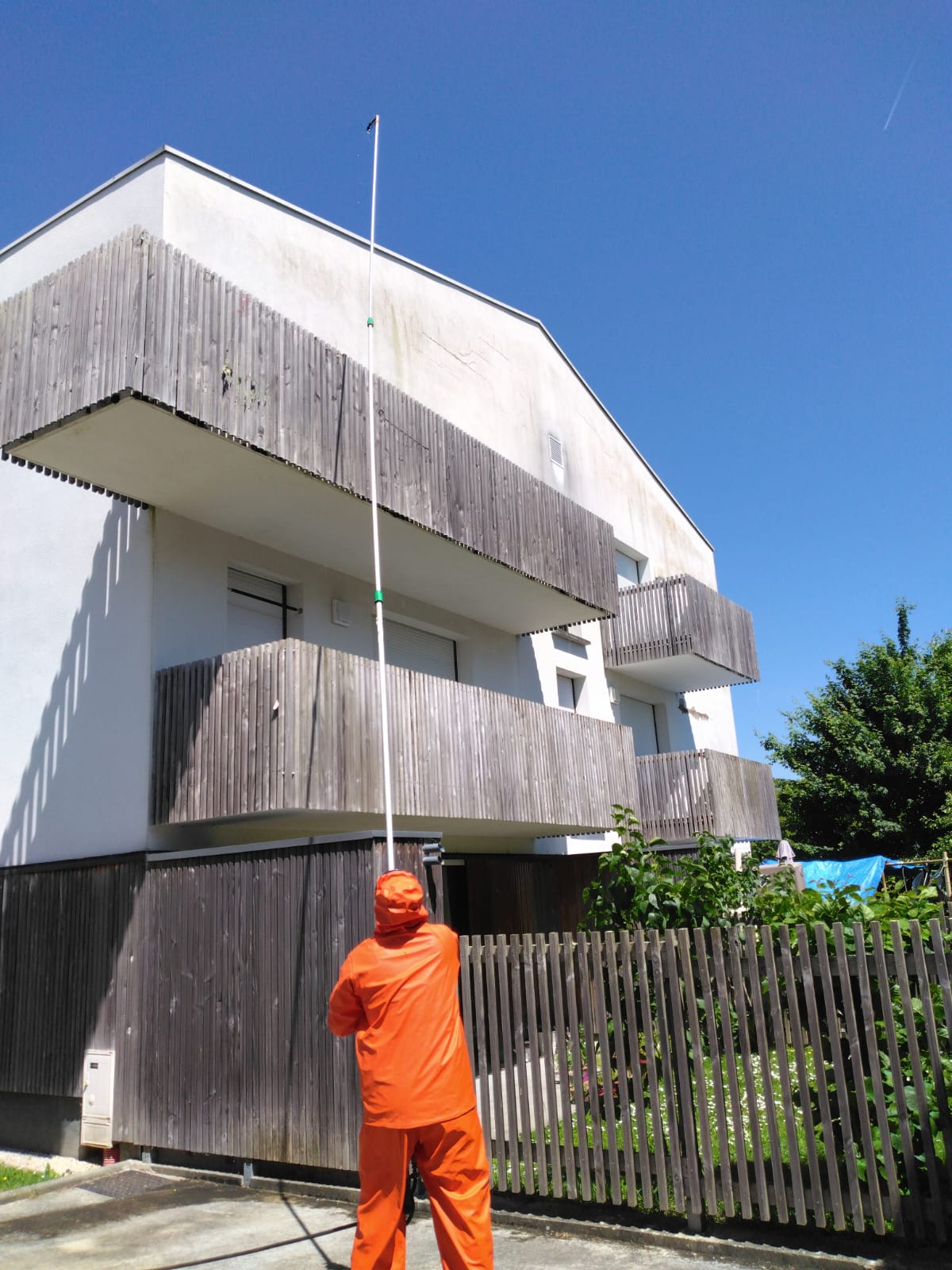 Localisée au 1, 3 et 5 Rue Rene Goscinny à La Chapelle Sur Erdre, La Pinède présente des particularités de nettoyage. En effet, ce sont des bâtiments qui ont 10 ans aujourd’hui et qui ont été construit avec bâti en enduit et bardage bois, le nettoyage est donc spécifique.